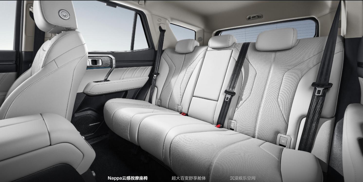 新车还配备了一块15.6英寸的中控屏幕,分辨率达到2.5K级别。相比现款车型上那种比较细长的屏幕,这块新屏幕在观影娱乐时的体验会好很多。更值得一提的是,后排同样提供了一块15.6英寸的娱乐屏,让后排的家人或朋友在旅途中也能享受同样的娱乐体验。再加上前排中央扶手区提供的、基于独立压缩机的冷暖箱,这辆坦克400就集齐了俗称“冰箱、彩电、大沙发”的舒适性配置。这些配置在以往主打硬派越野的车型中是相当罕见的,由此可见新款坦克400在提升驾乘舒适性方面确实下了很大功夫。